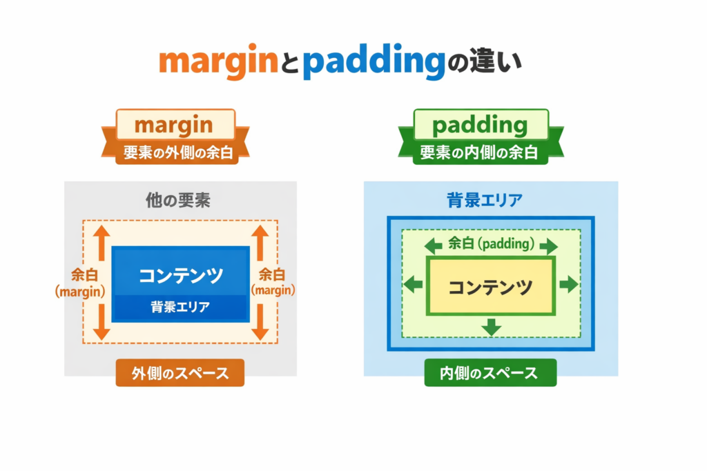 Web制作やフロントエンドを学び始めたとき、多くの人が最初につまずくのが「margin と padding の違い」です。